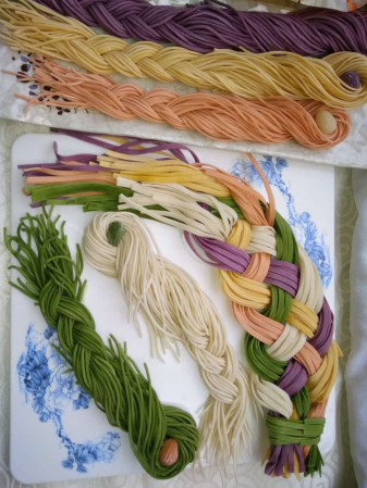 為什么?因為麥幫主不但能做出美麗的五彩蔬菜面、蔬菜汁燒賣皮,而且能將普通的面食做成藝術品,最難的是麥幫主做的面食全都是無添加的、無添加的、無添加的。